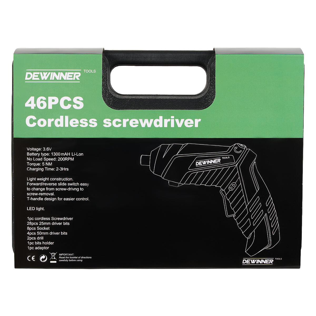 Destornillador inalámbrico DEWINNER 3.6v, juego de 46 piezas