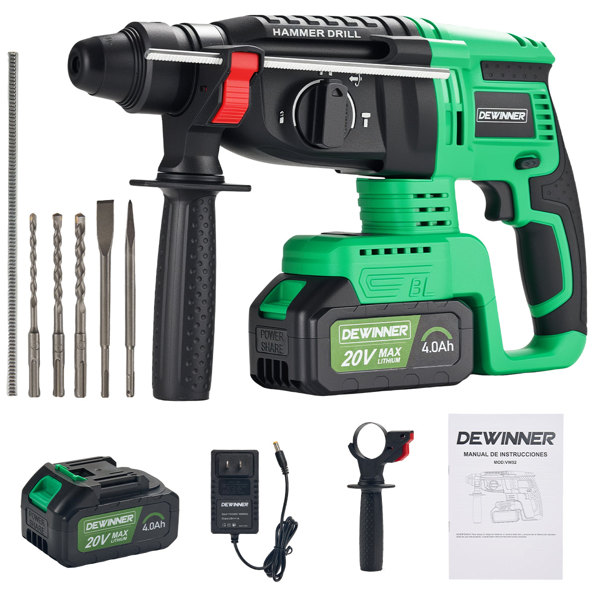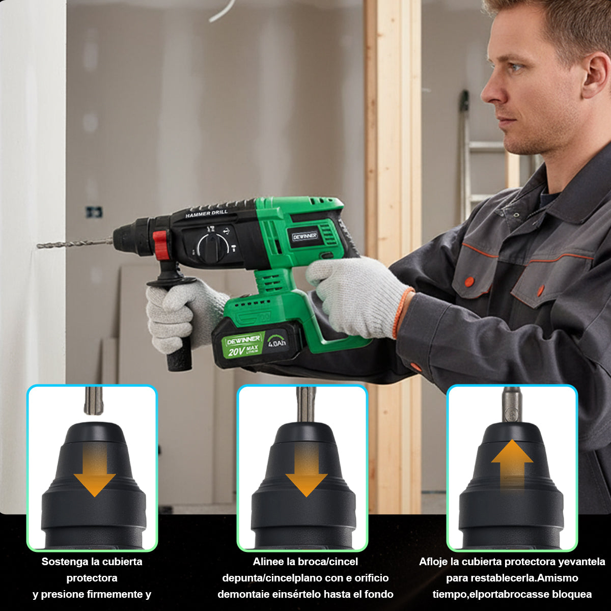 • Motor sin carbones que ofrece una máxima autonomía y vida útil. Menor calentamiento del martillo y menor mantenimiento.