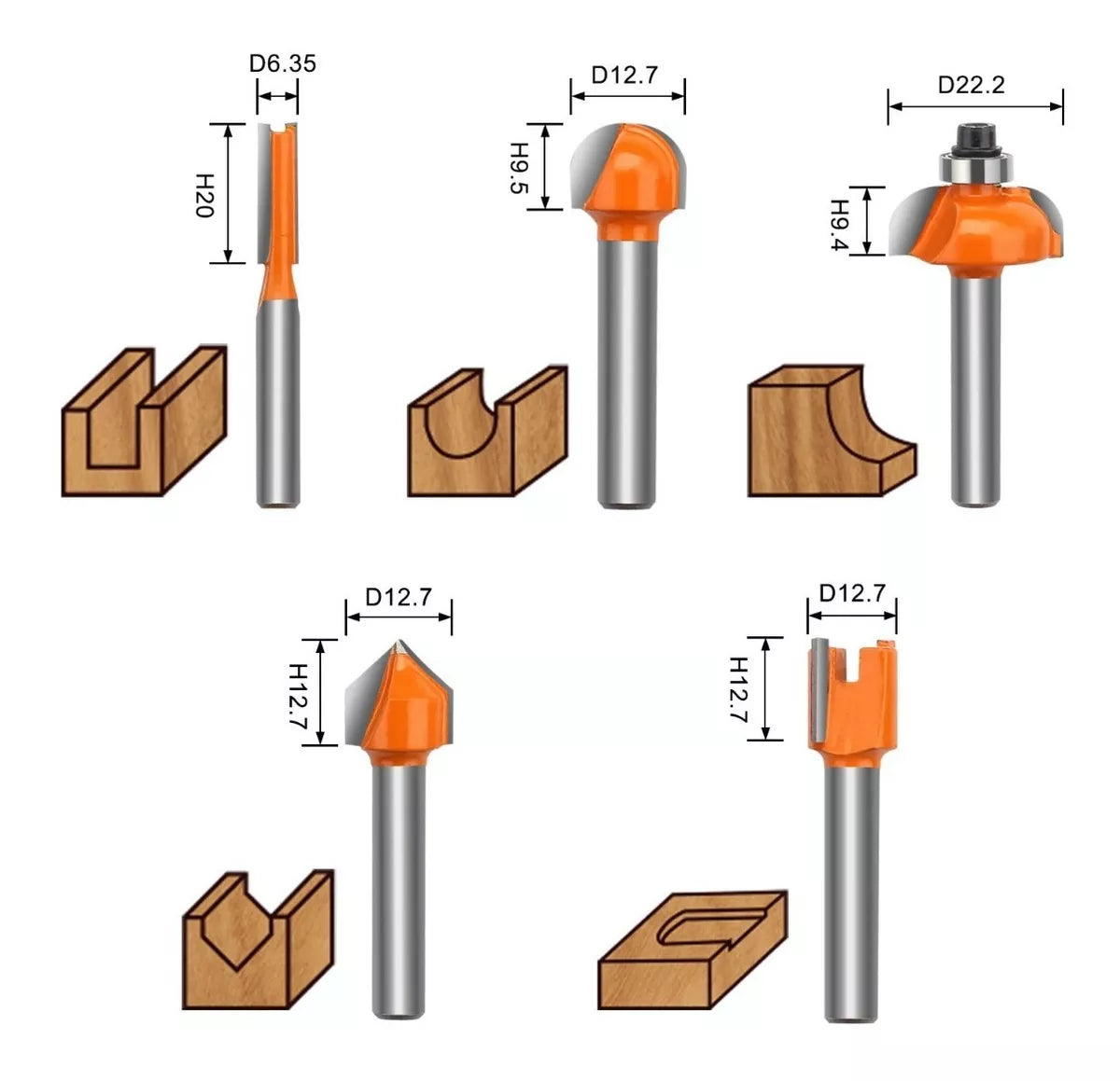 Juego Brocas Router Taladro Teeno 1/4 15 Pz Herramienta