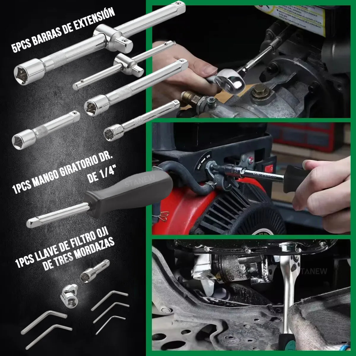 • Juego de herramientas mecánicas mando de 1/2", 1/4" y 3/8".