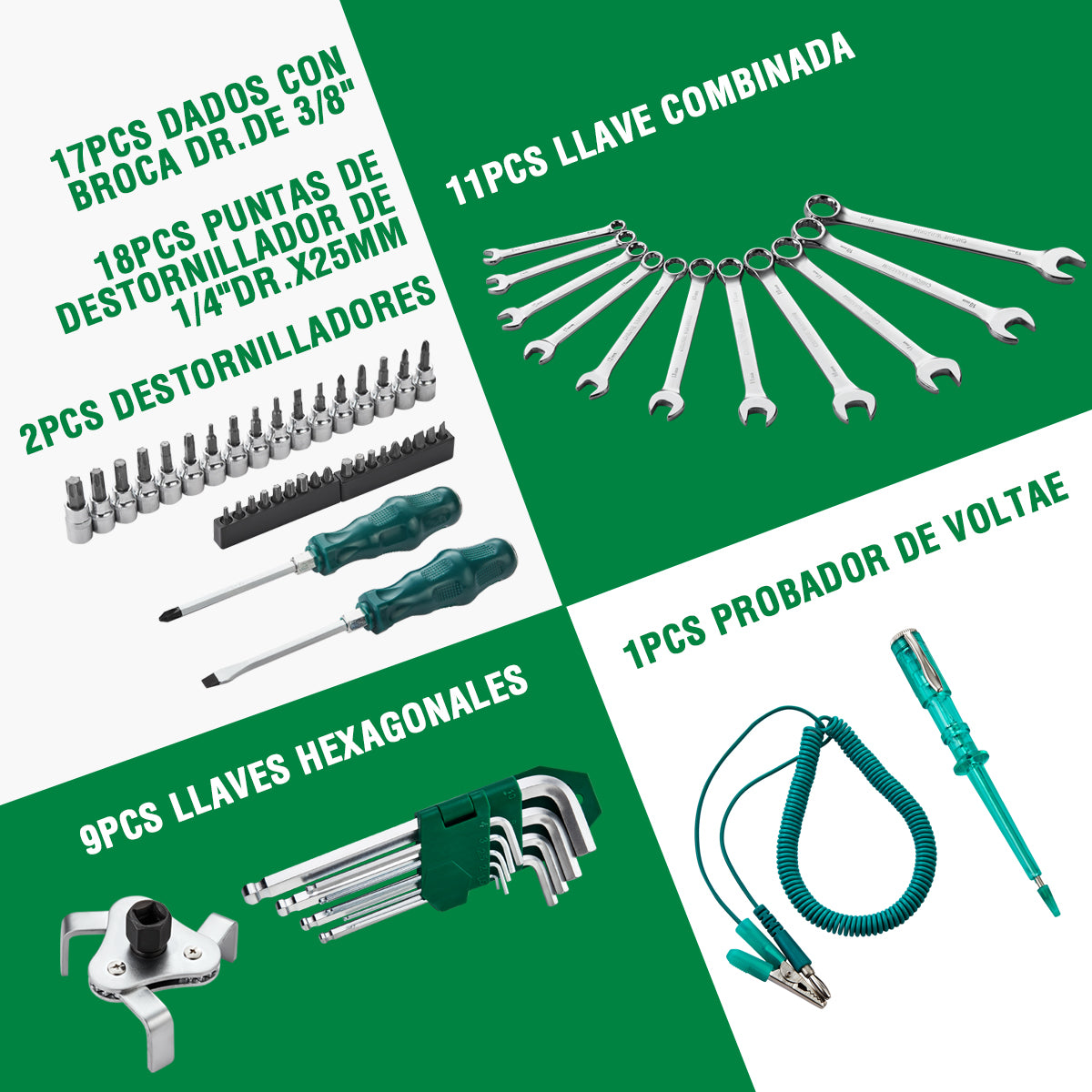9 * Llaves hexagonales: 1,5, 2, 2.5, 3, 4, 5, 6, 8, 10MM