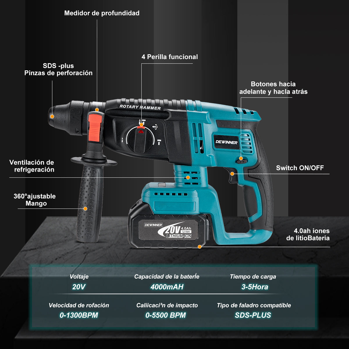 Rotomartillo Inalãmbrico Taladro Sds-plus 20v4ah Dweinner-LDQC2-26