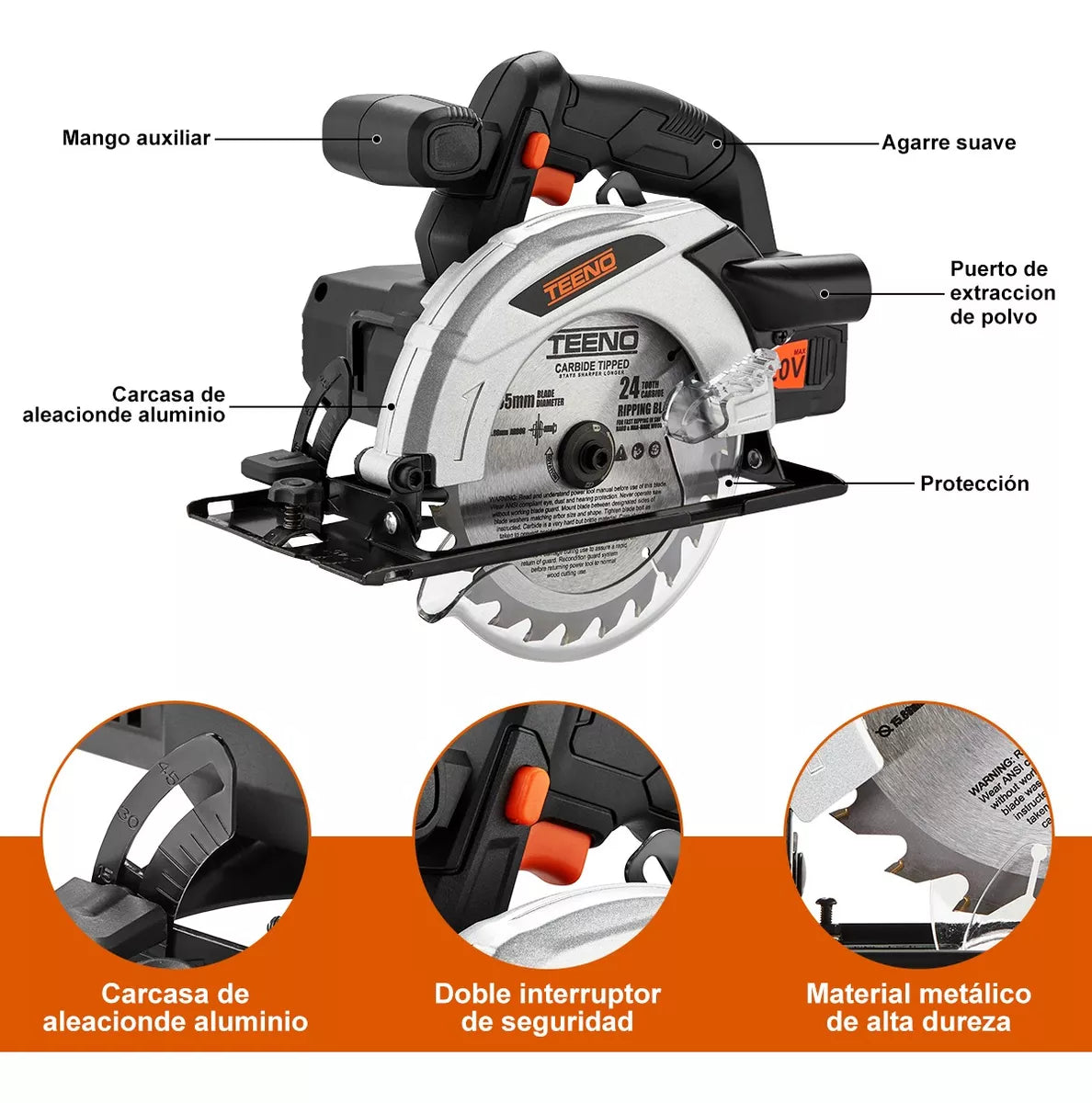 Sierra Circular Inalámbrica 20v Teeno Z334 4ah Disco 6-1/2